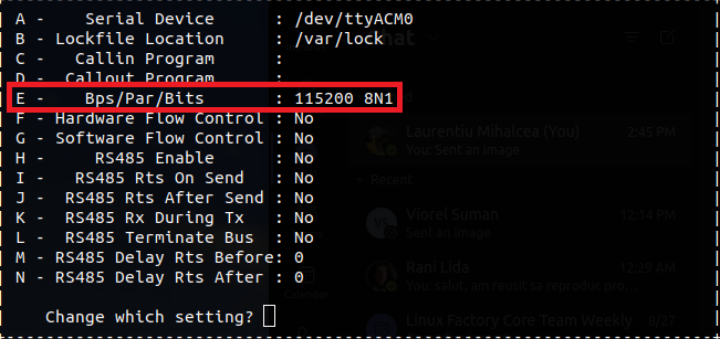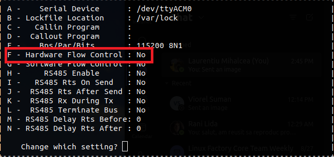 You need to perform the steps described above for both of the serial devices exported by the board. Therefore, you should end up with two open serial consoles as shown in Figure 13.